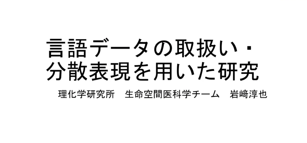 日時:2026年1月7日(水)18:00~19:30講師:岩﨑 淳也先生(理化学研究所 技師)演題:言語データの取扱い・分散表現を用いた研究形式:フルオンライン